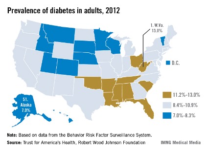 Adult diabetes rate highest in West VirginiaAugust 27, 2013Lipid DisordersDiabetesBusiness of Medicine