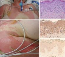 But within hours she had worsened; a return to the ED resulted in admission, and within a day, she was intubated. When she did not improve, she was transferred to IU. The dermatologists there suspected TEN. Skin biopsies "revealed a lymphocytic infiltrate at the dermoepidermal junction with some apoptotic keratinocytes consistent with TEN," noted the authors.