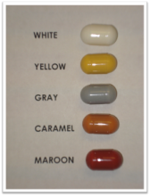 But in order to do that, they first needed to determine whether the color of the pill would impact the patients’ perception of safety and efficacy. A group of 80 adult epilepsy patients were shown standard AA size capsules in five “global colors” (white, yellow, gray, caramel, maroon) and asked to select any color(s) considered “unacceptable” and to rank their preferences.