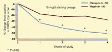 Patients with acute bipolar mania or a mixed episode were treated with olanzapine or placebo for 4 weeks in a randomized, double-blind trial. Compared with placebo, olanzapine at a starting dosage of 15 mg/d was associated with significant symptom improvement in the first week (50% change from baseline in Young Mania Rating Scale total score). This trend continued throughout the trial.