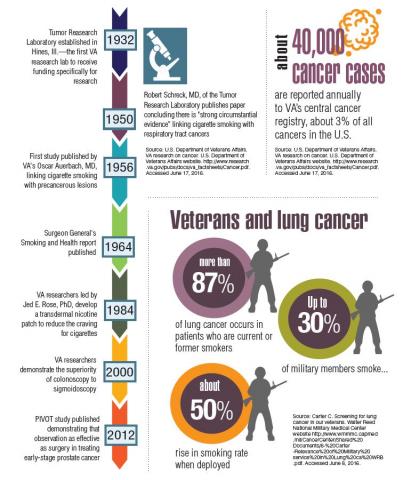 VA research on cancer dates to 1932, when it set up a tumor research unit. The VA remains focused on understanding and preventing cancers within its patient base and is at the forefront of cancer research. It currently has $59.5 million allocated to support almost 250 active projects in FY2017. These projects cover basic biology and genetic underpinning in laboratory-based research, as well as large clinical trials of treatments and approaches that advance care. In addition, the VA’s Central Cancer Registry aggregates data collected by about 120 VA medical centers that treat cancer patients dating from January 1, 1995. This information could help researchers involved with President Obama’s Cancer Moonshot initiative.