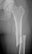 The review included a review of 310 published case reports of patients (aged 36-92 years) with atypical subtrochanteric and femoral shaft fractures. Of these patients, 291 (94%) had been treated with bisphosphonates, mostly for osteoporosis. The median duration of treatment was 7 years, and most were treated for more than 5 years, according to the report, which points out that these fractures are rare, accounting for less than 1% of the overall rate of hip and femur fractures (J. Bone Miner. Res. 2010 Sept. 14 [doi:10.1002/jbmr.253]).