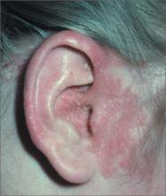 A 32-year-old woman asked her family physician (FP) to look at the rash around both of her ears. The rash was itchy and the patient acknowledged having a long-term problem with dandruff.
