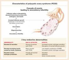 These abnormalities prevent growth of a dominant follicle (FIGURE 1), leading to anovulation and oligomenorrhea.