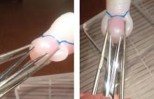 FIGURE 1 provides two photographs of how the clamped epithelium appears from different angles before and after tying the knot. The angle you see in the June cover illustration is simply looking at it straight from the front—a little unusual and potentially confusing.