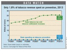 States’ spending on tobacco prevention for 2013 will total $459.5 million, or 1.8% of the $25.7 billion they will receive in revenue from tobacco taxes and the 1998 tobacco settlement, according to a report from the Campaign for Tobacco-Free Kids.